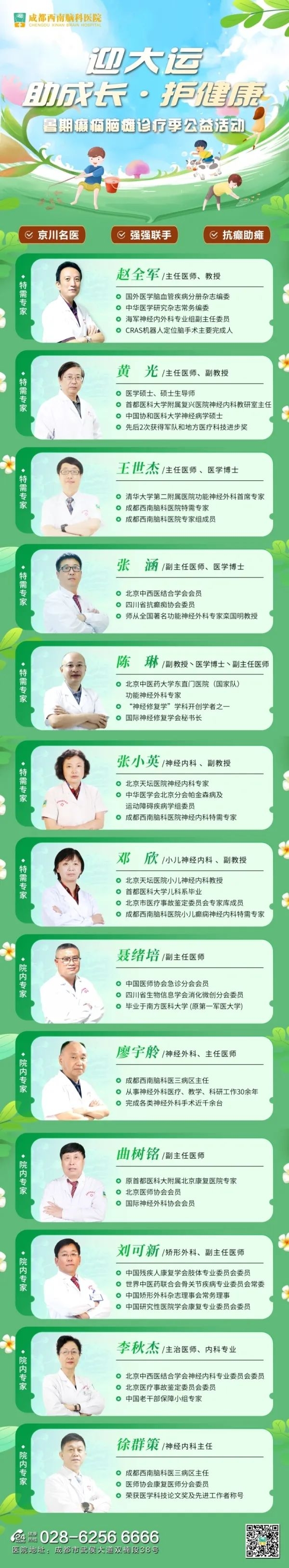 活动期间,患者们将享受到京川两地脑科医生线上(5G远程会诊)线下(一对一面诊)免费会诊,对病情进行专业评估,医生提供针对性的用药指导;判断患者是否适合外科微创治疗以及外科治疗效果评估;并有康复医师提供脑瘫、癫痫患者的日常行为康复指导。