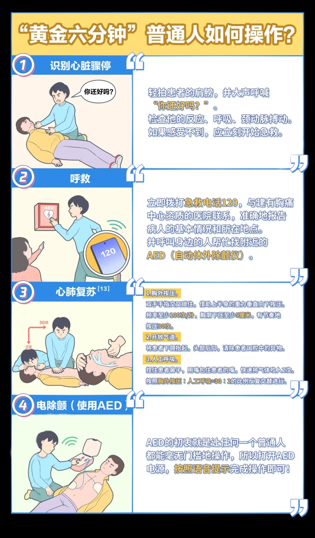 “黄金六分钟”就是在“心跳停止后最初的六分钟”内进行心肺复苏和使用自动体外除颤器的这个黄金时间窗口。
