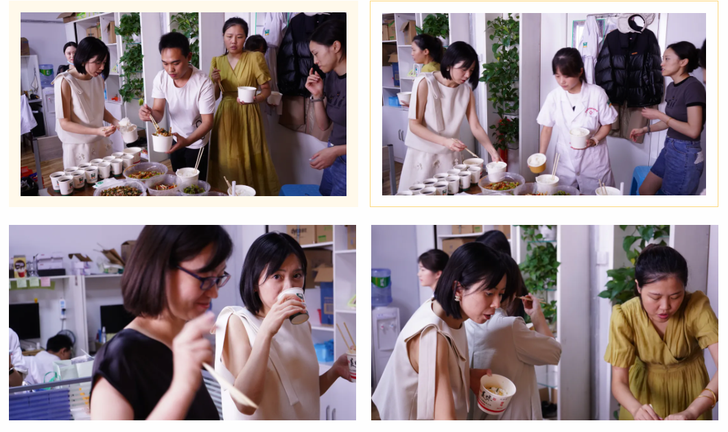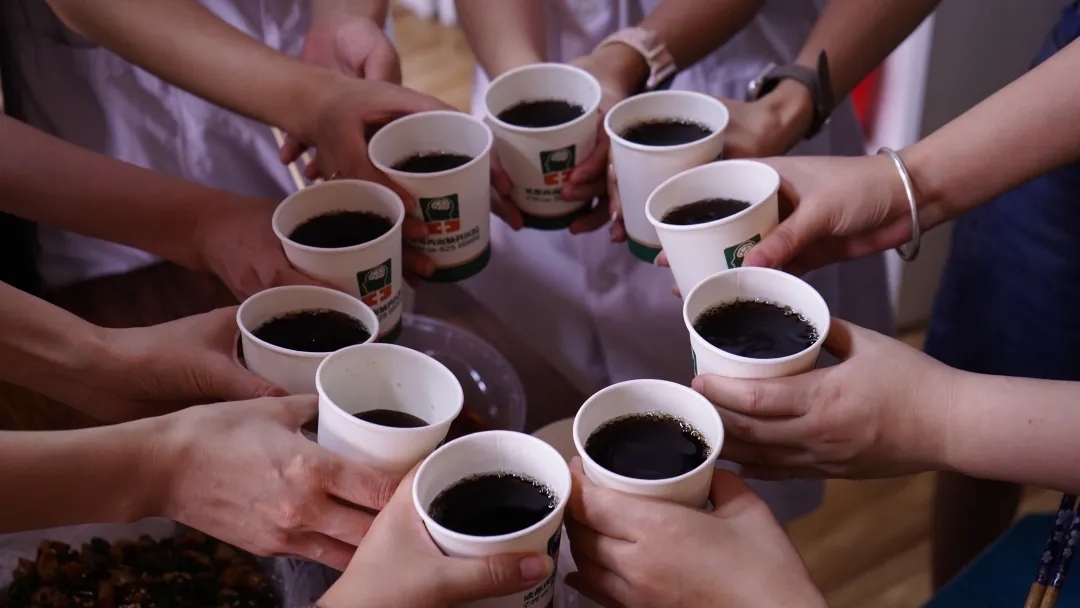 大家纷纷放下手头的工作,聚集到桌前。从香辣的川菜到可口的海鲜,每一道菜都让人垂涎欲滴,满足了不同同事的口味偏好。随着冰镇的可乐倒入纸杯,气泡在杯中欢快地跳跃,仿佛也在为这场聚会助兴。