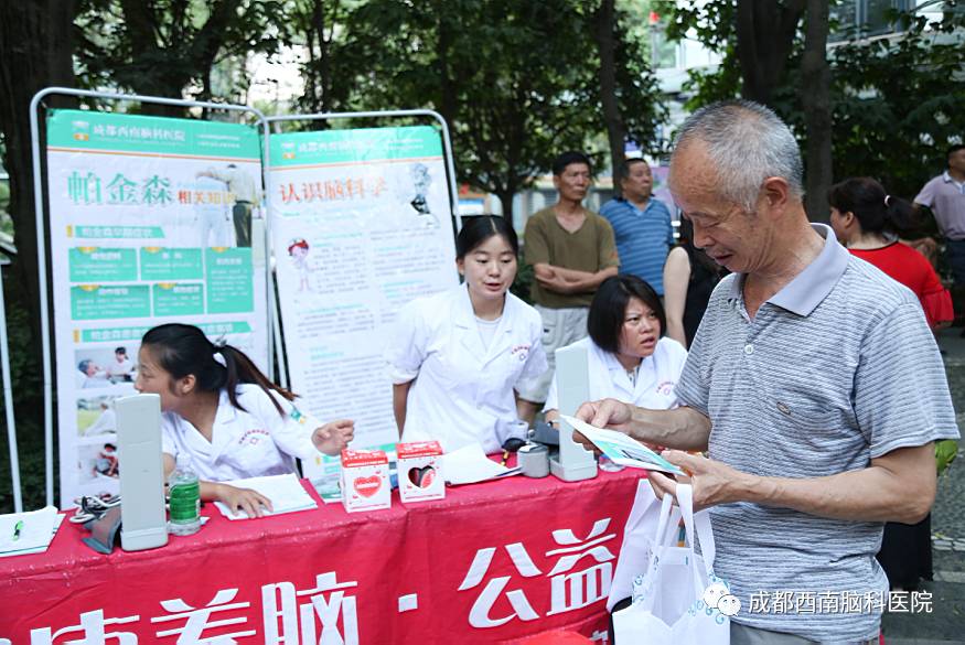 成都西南脑科医院的医护人员已经先后去到多个社区进行了公益义诊活动,这次黉门街社区义诊主要目的是在庆祝中国共产党建党96周年的同时,为社区的老人们进行了老年病的知识普及和义诊,提高他们的健康意识,为大家传播老年痴呆、帕金森、脑萎缩等老年病的相关知识。让更多的老年人加强脑部疾病的预防知识,意识到这种疾病的严重性。