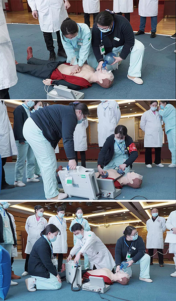 为了切实保障患者生命安全,提升全院护理人员紧急救治和生命支持服务能力,1月9日下午,我院医务科及护理部共同组织开展了“心肺复苏基本生命支持术+简易呼吸器的操作及除颤(非同步方式)技术”操作演练。