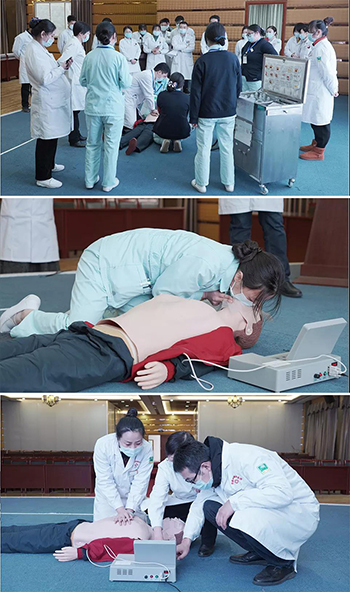 本次演练模拟一例住院患者突发呼吸心跳骤停,经过值班医护人员和急救小组的快速反应及准确施救成功将患者转危为安。演练结束后,演练团队又就院内现有抢救设备使用方法和急救小组职能为大家进行了详细讲解。