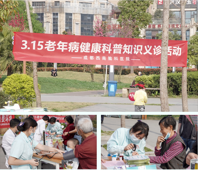 为了关爱社区居民健康,我院于昨日受邀参与了由成都市红牌楼社区街道办举办的3.15老年病健康科普知识义诊活动,让更多的老年人加强脑部疾病的预防知识,意识到老年痴呆、帕金森、脑萎缩等老年病的严重性。