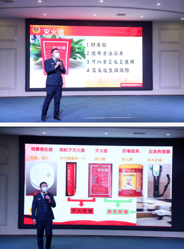 消防教官通过一张张触目惊心的图片、一目目血的教训,使参加培训的全体职工更加直观深刻地认识到火灾的危险性和残酷性,给予职工们以警醒。培训结合不同火灾发生后的救助方法、火灾预防、扑救知识、逃生常识、岗位防火等注意事项进行讲解,并针对消防灭火器材的正确使用方法进行演示,使参加培训的职工能够直观学习和掌握科学的火灾预防、灭火方法及逃生技能。