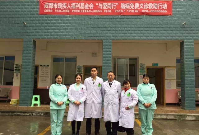 1月12日,为了帮助脑病患者减轻医疗负担,引导患者得到及早规范的治疗。“贫困脑病专项基金”医师团站走进成都大邑县,携手大邑县人民医院·晋原社区卫生服务中心开展了成都市残疾人福利基金会“与爱同行”脑病免费义诊救助行动(以下简称“与爱同行”公益项目)。此次义诊的医师包括成都西南脑科医院神经外科副主任医师徐世明、成都西南脑科医院主治医生赖兴国、成都西南脑科医院护理部主任胡文秀等。
