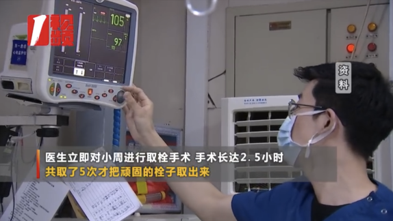 长达2个半小时的紧急手术中,共5次取出血栓,术后再次转入重症ICU监护室。