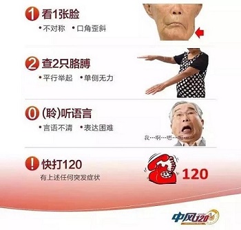神经科医生提醒,人们都要学会脑卒中早期发生的“120识别口诀”: