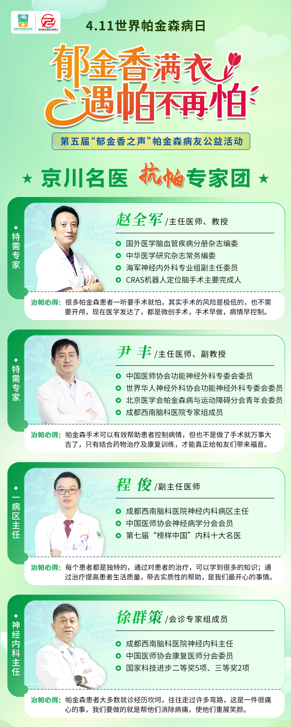 特别提醒:目前成都疫情控制良好,但全球疫情形势依然严峻。帕金森患者多为老年人,可能存在糖尿病,高血压等基础疾病,属于新冠易感人群,更应该遵守新冠的较基本的防护措施。勤洗手,戴口罩,保持社交距离,非必要不外出、不聚集等,较大程度切断新冠的传播途径。
