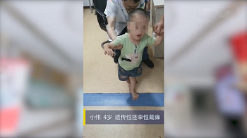 小伟,年幼的时候因为行走时成剪刀步态、尖足、双下肢外展受限、偶有阵挛,不能独自站立、独自行走,需要在有辅助物才可行走,家人带去医院检查,发现小伟患上了遗传性痉挛性截瘫。