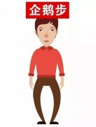步子很小,身体往前倾,走的时候两手不会自然摆动,面部也比较僵硬。学名叫慌张步态或小碎步。走路姿势像企鹅,也俗称“企鹅步”。