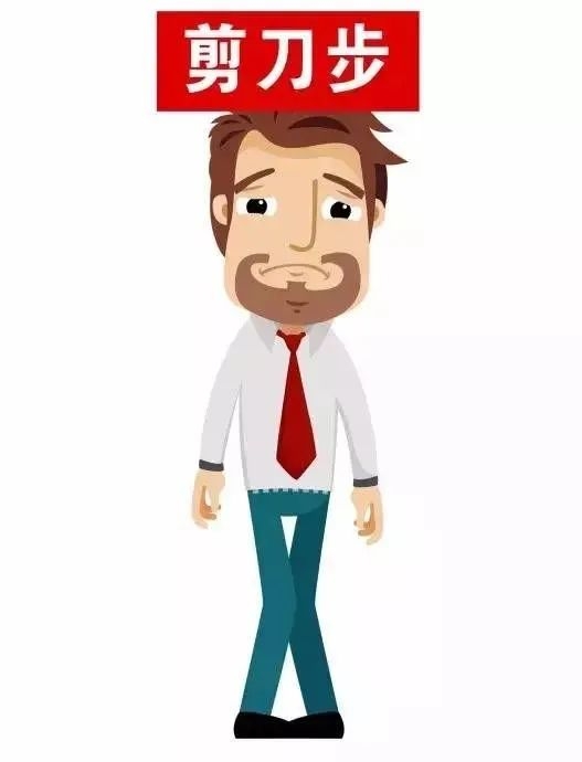 走路时,迈步像在画圈,两边膝盖常常贴在一起,互相摩擦,甚至两腿完全交叉,步态像一把剪刀一样。如果你肌肉僵硬、力量不够,就容易出现这种画圈的步态。
