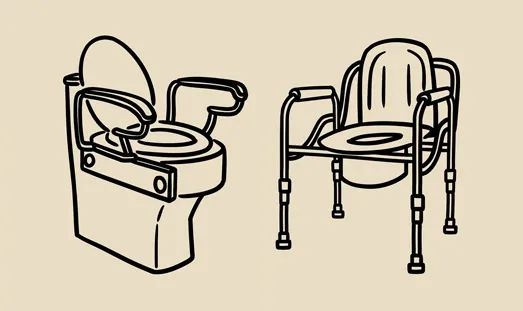 步行困难者可先用座便椅,或在座便器两侧安装扶手。